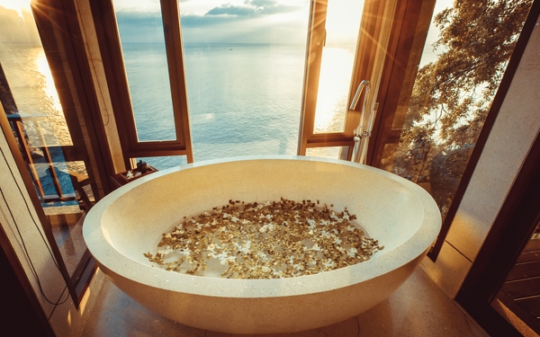 Paresa Resort is a luxury resort located in Kamala Beach, on the island of Phuket in Thailand. Ideally situated on a cliff side overlooking the stunning Andaman Sea, this luxorious resort offers elegantly appointed villas and suites with private infinity pools. All suites feature large bathrooms, luxury linens, iPod docking stations, and LCD TVs and villas also feature private bars with espresso machines.