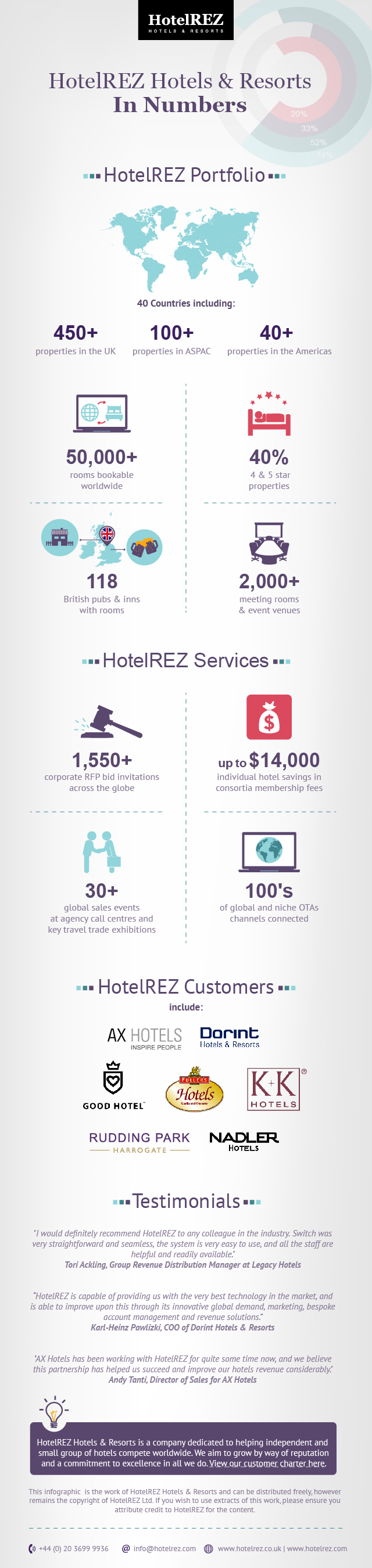 HotelREZ Hotels & Resorts is a hotel representation company providing distribution, sales and marketing consultancy and technology to independent hotels and small chains. We provide properties with GDS representation under our own HO chain code, and help market hotels to thousands of travel and MICE agents and partners worldwide. For more information on joining our portfolio of unique and independent hotels contact our Business Development team today or complete our hotel membership enquiry form.
